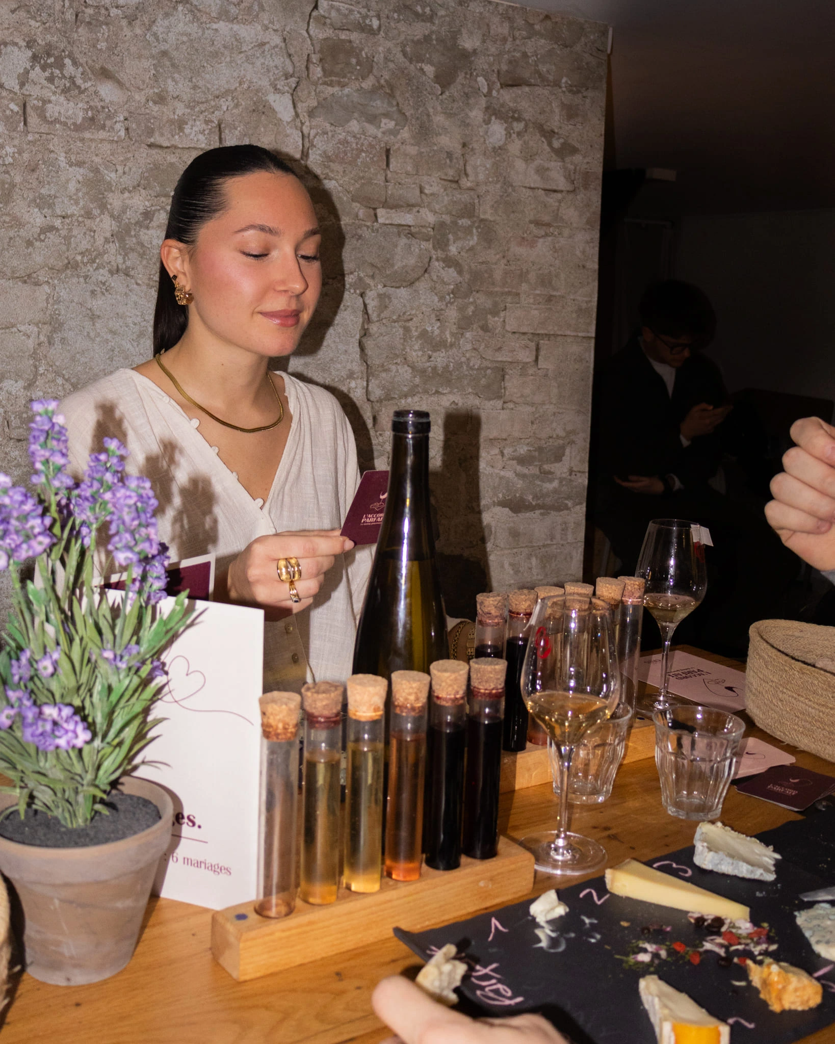 Chaque participant déguste six accords, imaginés par Les Petits Crus, et change de place à chaque dégustation pour rencontrer une nouvelle personne. Les conversations naissent naturellement grâce aux saveurs à décrire, aux vins à comparer et aux fromages à savourer. L’expérience est rythmée, vivante, et surtout, agréable.
